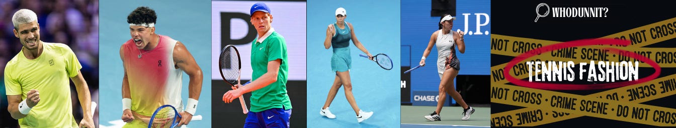 With every passing tournament, the cumulative effort seems to be draining. The majority of the outfits are lacklustre and forgettable with morbidly hideous colour schemes *cue Alcaraz’s neon fit at the Paris Masters; dressing Jannik Sinner up as Luigi at Roland Garros; Nike’s bib-like dress for the Australian Open in a gloomy teal and yellow; Adidas’s poorly abstracted Y-3 US Open collection with haphazardly splattered browns; or Ons’ collection that looked like using MS Paint for the first time after which the printer ran out of ink mid-job and just gave up entirely.*