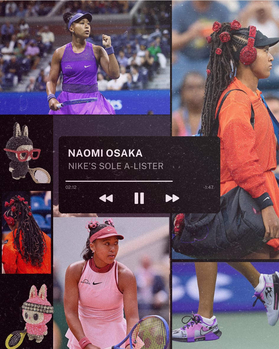 Naomi Osaka remains the exception, the only player Nike seems to truly invest in anymore. Fair play to them because she is a four-time grand slam champion whose looks alone can set the tennis world buzzing. At the USO this year, Osaka dazzled in glitter-studded outfits. A red look, for the night session, and a lilac one, for the day session matches. She went the extra mile by going all out from head-to-toe with glitter roses cascading down her hair. And just when you thought the bedazzling had reached its peak, she revealed punny glittery Labubus named Andre Swagassi and Billie Jean Bling, amongst others.